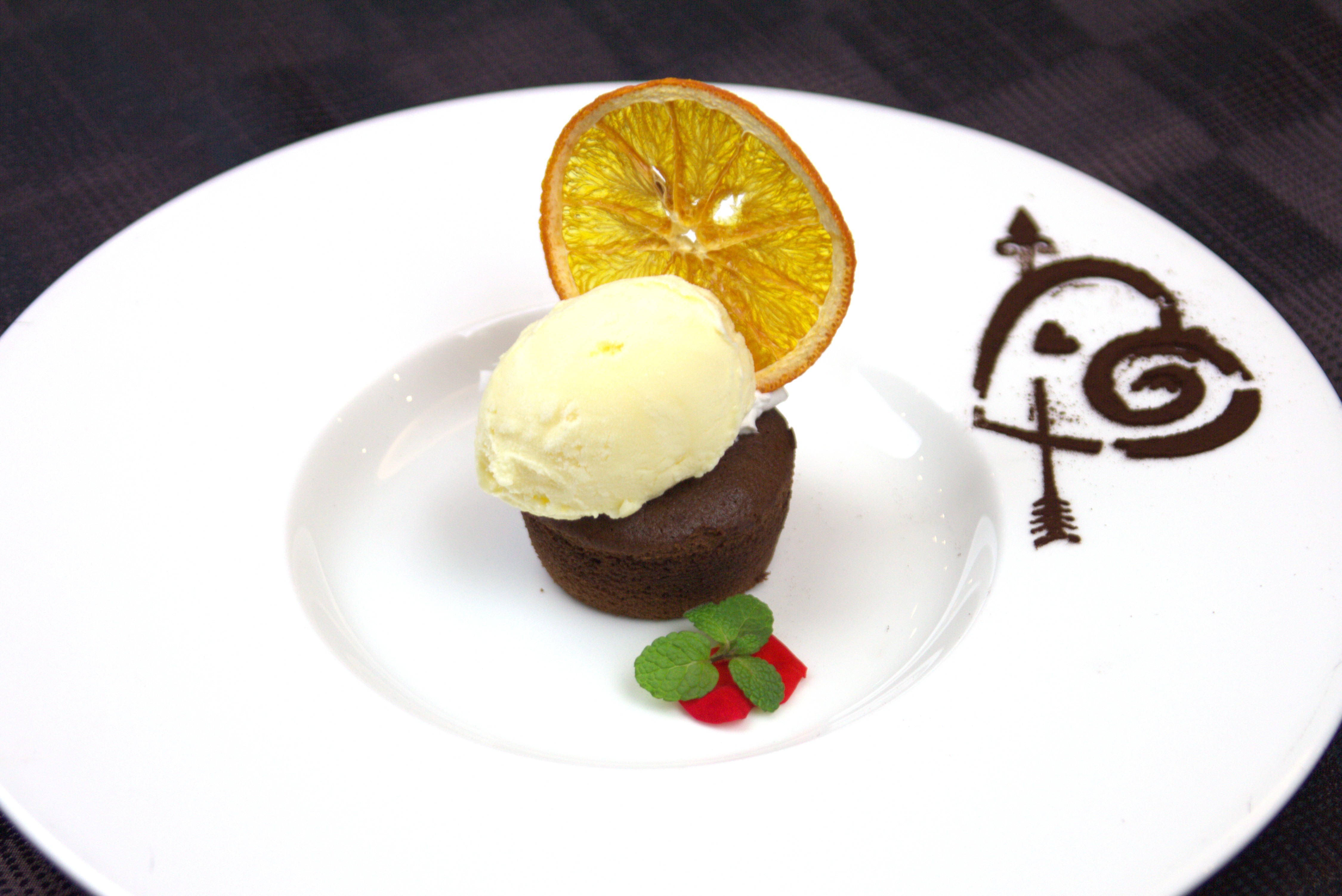 プレミアムランチのデザートは『フォンダンショコラ オランジュ』にてご提供となります。